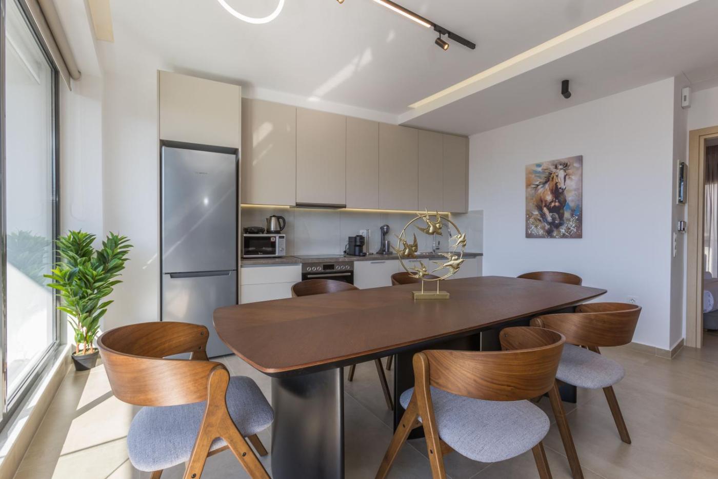 Two-Bedroom Apartment with Private Pool. This apartment features a rooftop pool. This spacious apartment features 1 living room, 2 separate bedrooms and 2 bathrooms with a shower and free toiletries. In the well-fitted kitchen, guests will find a stovetop, a refrigerator, a dishwasher and kitchenware. The air-conditioned apartment features a flat-screen TV, a washing machine, a private entrance, soundproof walls as well as pool views. The unit has 2 beds.