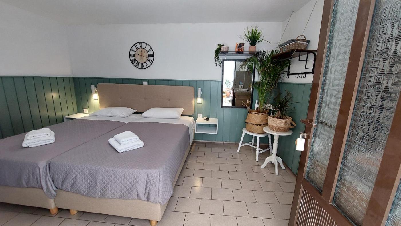 Deluxe Double Room. The double rooms kitchen, which features a refrigerator and kitchenware, is available for cooking and storing food. The spacious double room provides air conditioning, a tea and coffee maker, a terrace with a quiet street view as well as a private bathroom featuring a shower. The unit offers 1 bed. ;